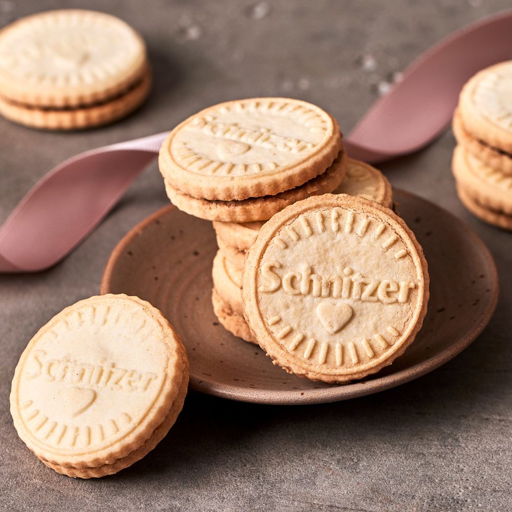 Der klassische Doppelkeks in glutenfrei und vegan. Zwei knusprige Kekse mit cremiger Schokofüllung – perfekt zum Kaffee oder als süßer Snack zwischendurch.